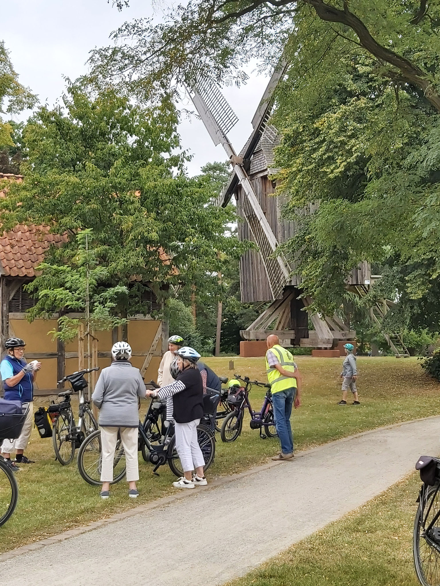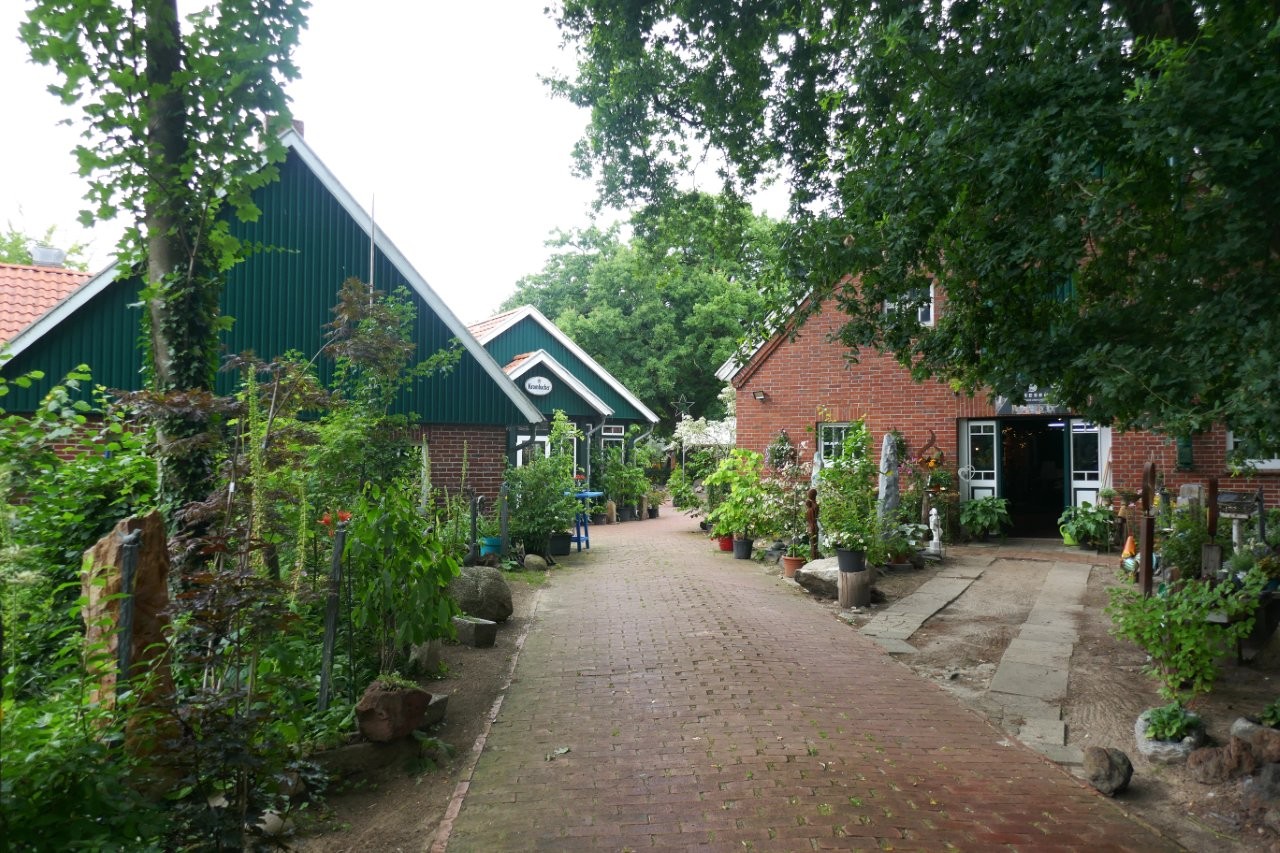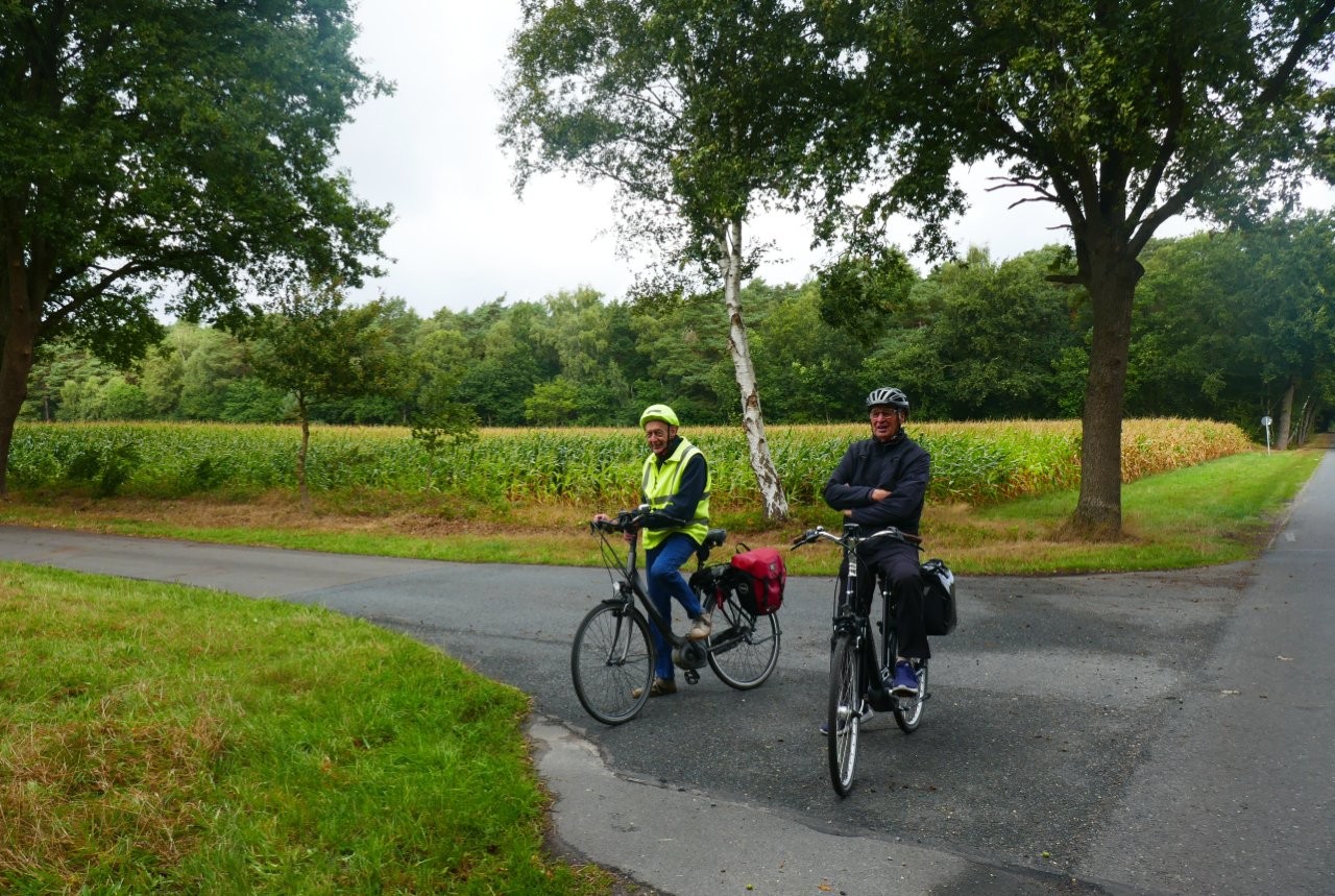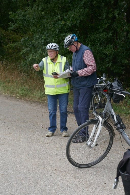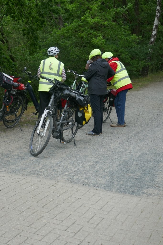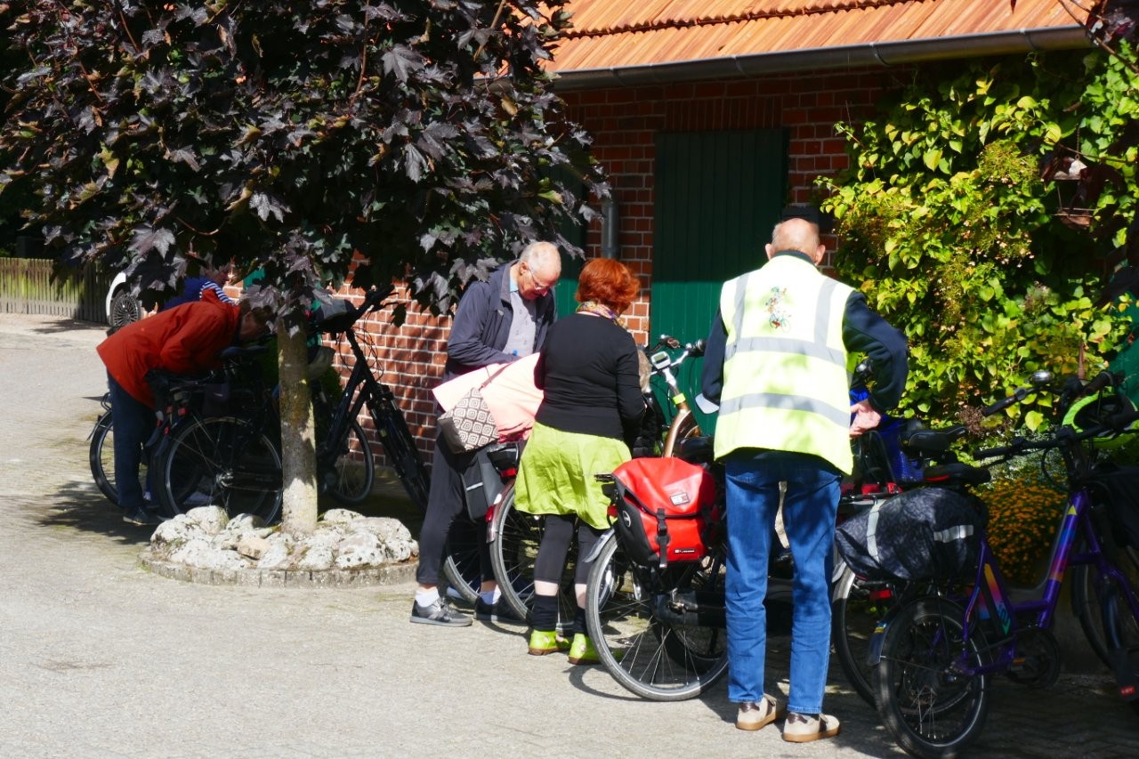 Gestärkt setzten wir uns auf unsere mittlerweile staubigen Räder. Sigrid führte uns auch auf der zweiten Etappe sicher über urige Wege und von Bäumen gesäumten Straßen. Bilohe und Ohlenstedt wurden durchfahren, bevor wir kaffeedurstigen Radler ins Hofcafé Hülseberg, bei Herbert und Bärbel Joost, einkehrten.