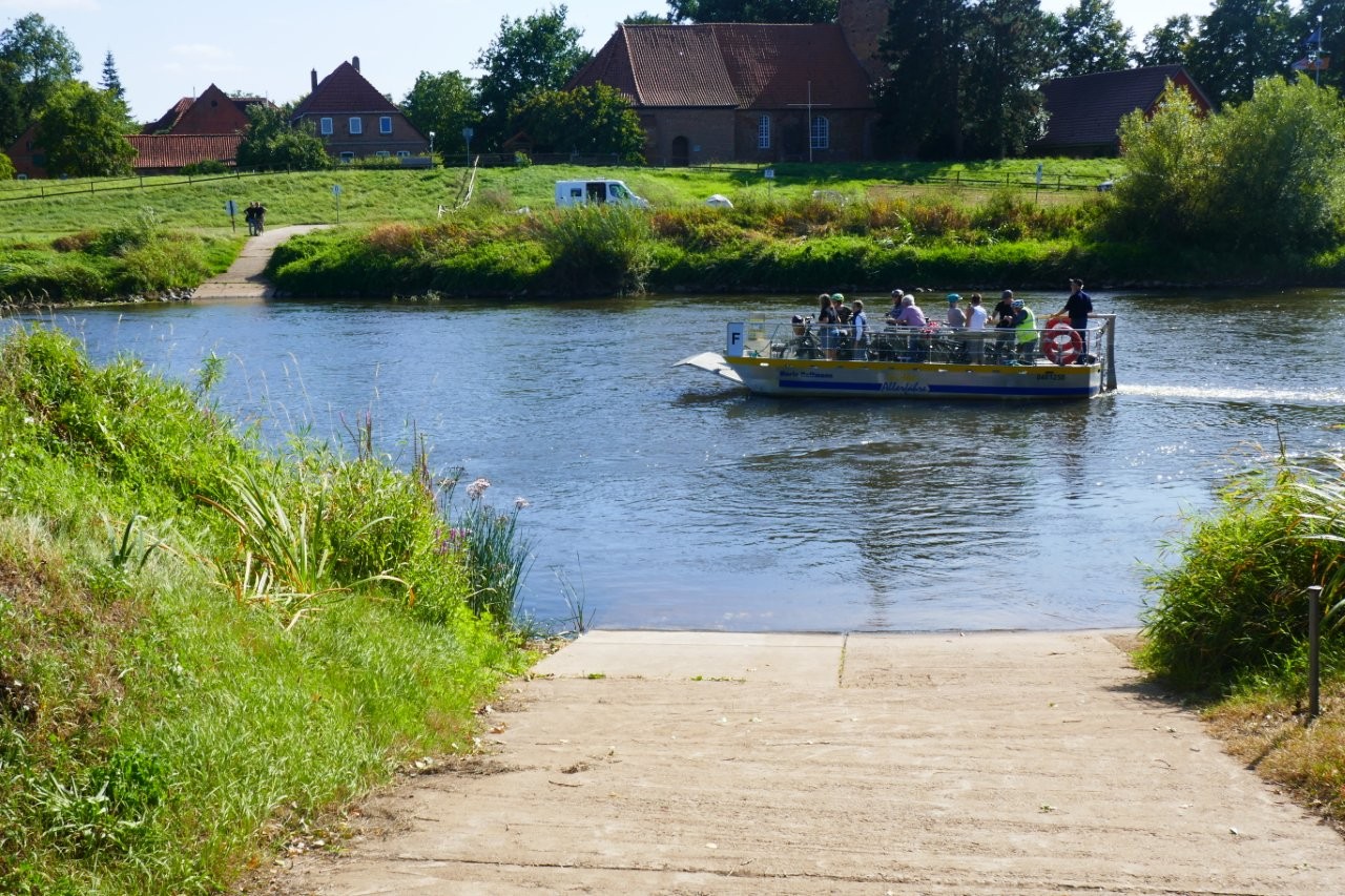 Weiter radelten wir auf dem Allerradweg, in Eilte über die Allerbrücke nach Böhme und auf Nebenstrecke der Aller nach Otersen. Mit der Solarfähre setzten wir uns wieder nach Westen.