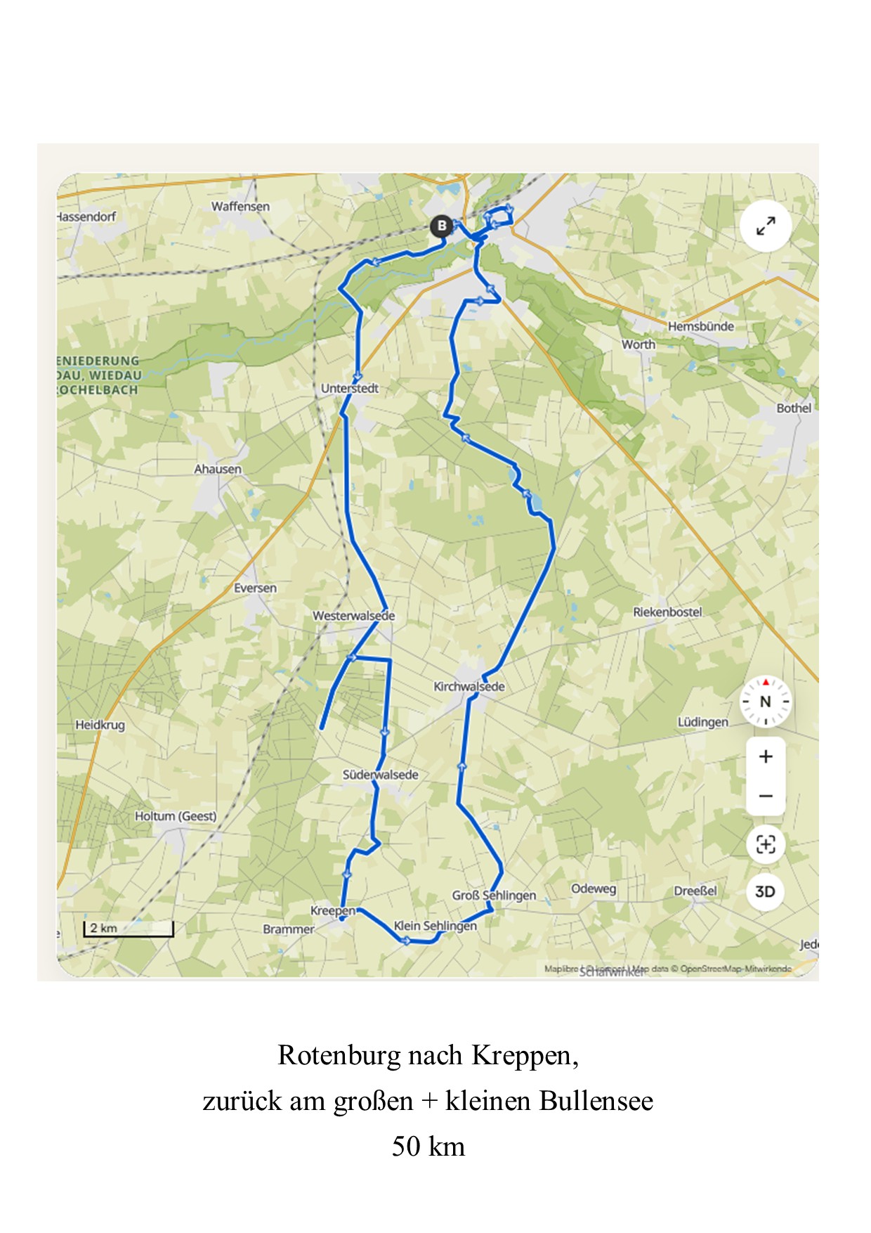in Richtung Süderwalsede und weiter zum Mittagsziel im Ort Kreepen.