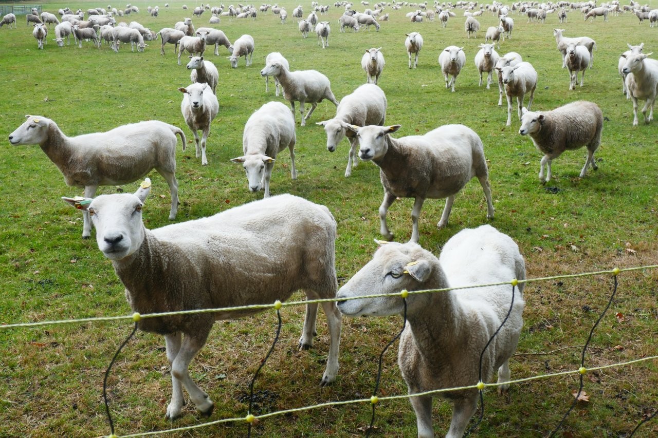 Am Wegesrand taucht eine riesige Schafherde auf